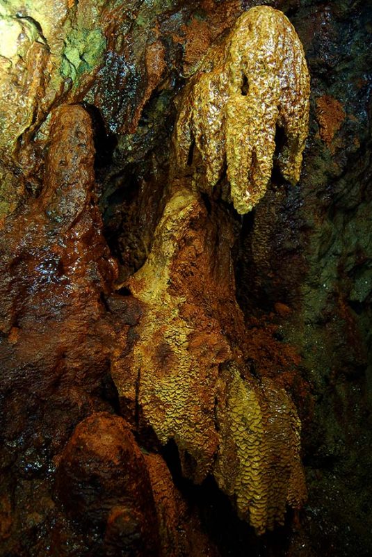 Entre estalactites, estalagmites e bandeiras, encontramos algumas delas danificadas não se sabe se pelo homem ou simplesmente pela sua fragilidade, tamanho e peso adquiridos ao longo dos anos.