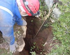 Figura 1 – Fotos do algar, após se retirarem as lajes que o tapavam e alargadas as paredes para a 1ª descida (Fotos:  Samuel Lopes – GEM/WIND e Sandra Lopes – GEM)