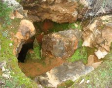 Figura 8 – Entrada do Algar Alecrineiros Nortinho (Foto: Jorge Faustino – GEM)Descrição:Pequeno algar de entrada muito apertada, segue-se um poço de 5 metros, também apertado e sinuoso. A base de cascalheira e argila tem inclinação no sentido NNO, afunilando e terminando no mesmo sentido.Geologia: A gruta aparenta ter um controlo estrutural por duas famílias de fraturas de direção grosseira N-S e NW – SE, subverticais. As camadas regionalmente têm direção aproximadamente NW – SE e inclinação suave para Sul. A gruta desenvolve-se em calcários da formação de Calcários Mícriticos da Serra de Aire, datada do andar Batoniano, do Jurássico Médio. A gruta aparenta tratar-se de um “vadose shaft” de acordo com a definição de Baron, 2003, sendo que grutas com desenvolvimento essencialmente vertical que conduzem a água do epicarso para as zonas mais profundas do carso.Presente: Bom, os pequenos algares também são importantes, que é o caso deste. Na cabeceira tinha um velho spit, mas no Cadastro Nacional de Cavidades, nada. Agora já está lá colocado.