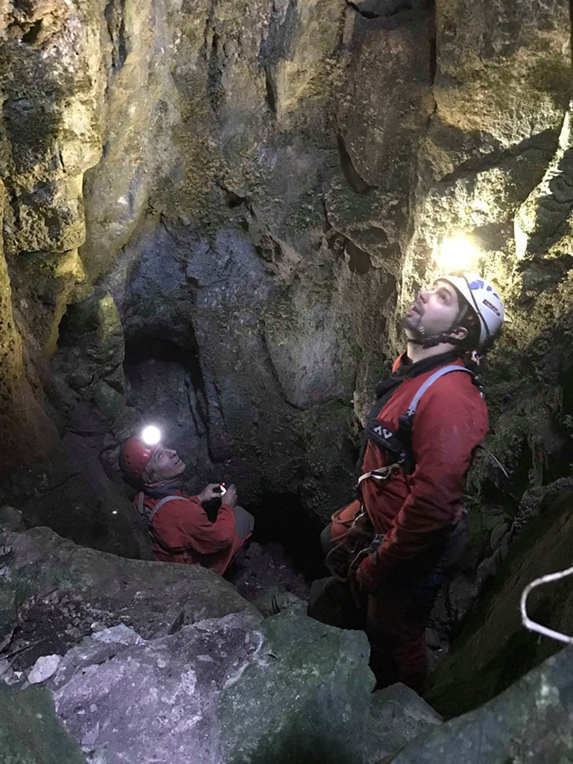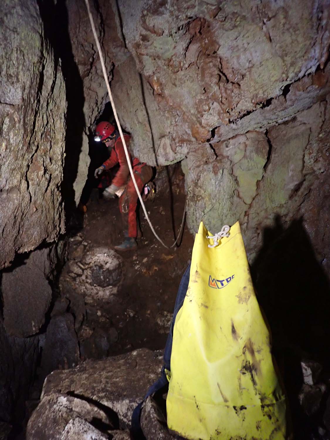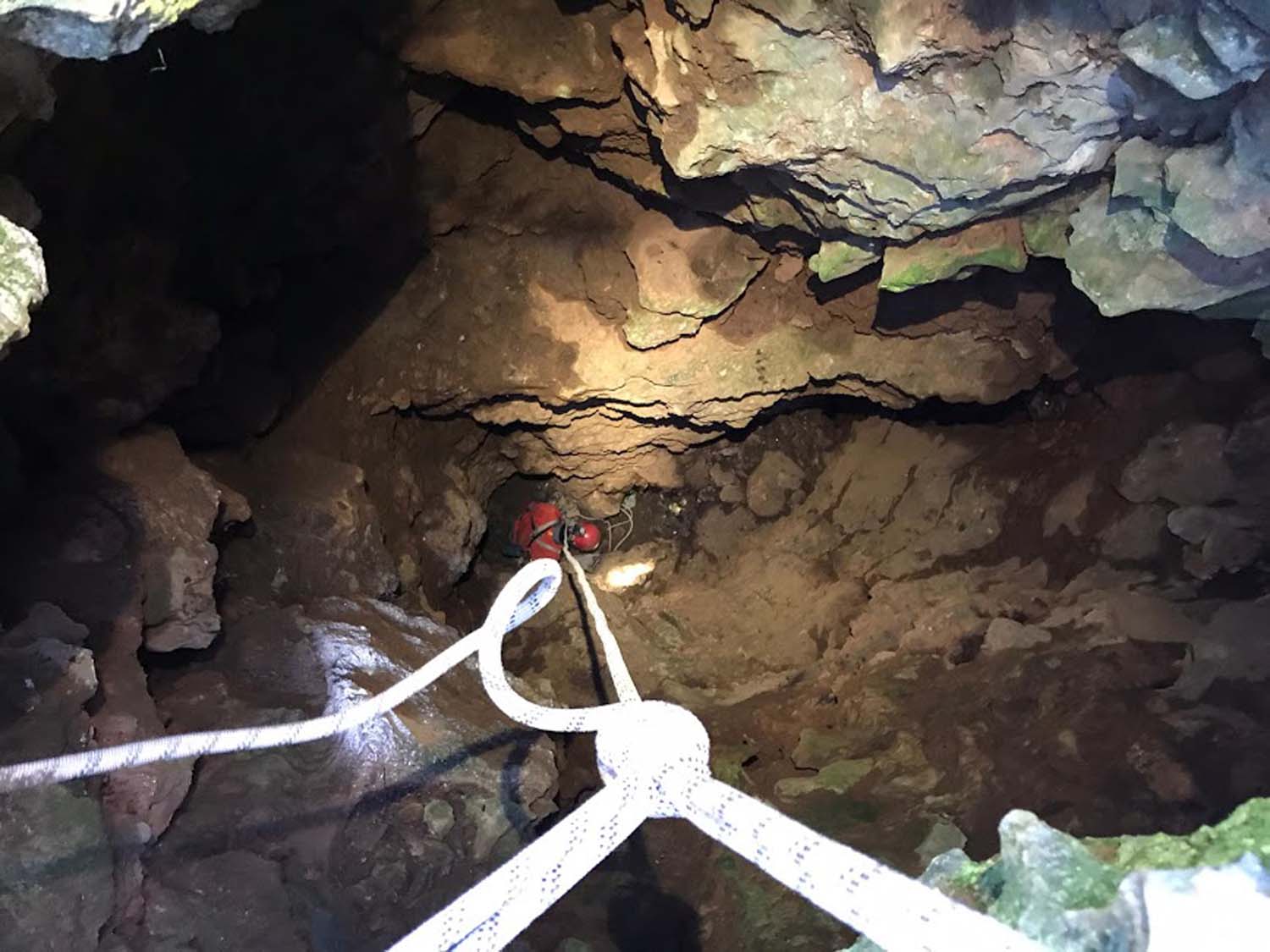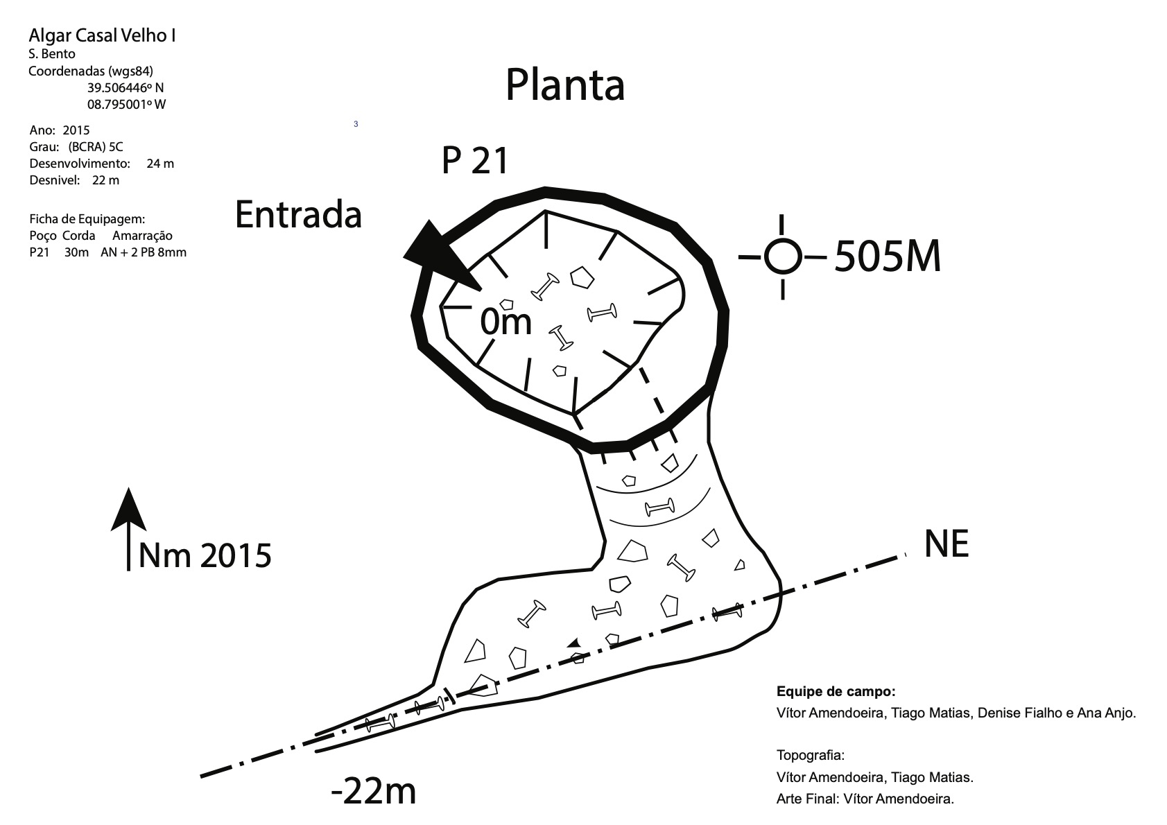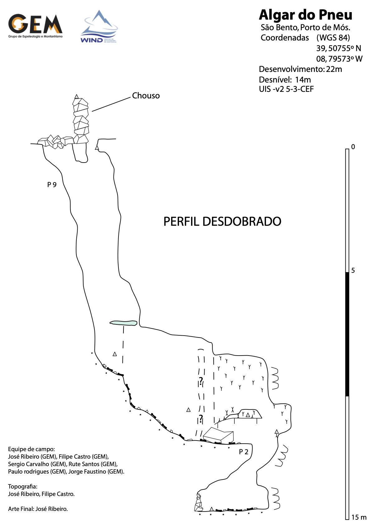 Contudo fizemos uma breve visita recentemente com o objetivo de elaborarmos uma ficha de equipagem e um pequeno levantamento fotográfico. Reparámos também que foi feito um trabalho de desobstrução que adicionou mais uns metros à topografia. Uma pequena passagem estreita, um poço com patamar e por baixo um caus de blocos que se vai descendo em destrepe, até não ser mais humanamente possível progredir.