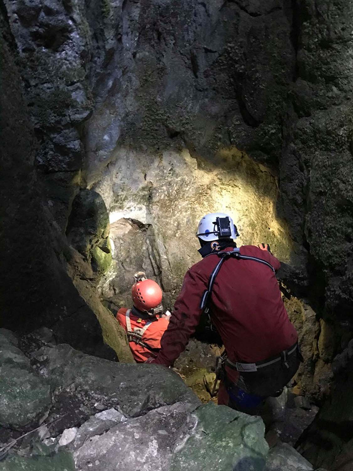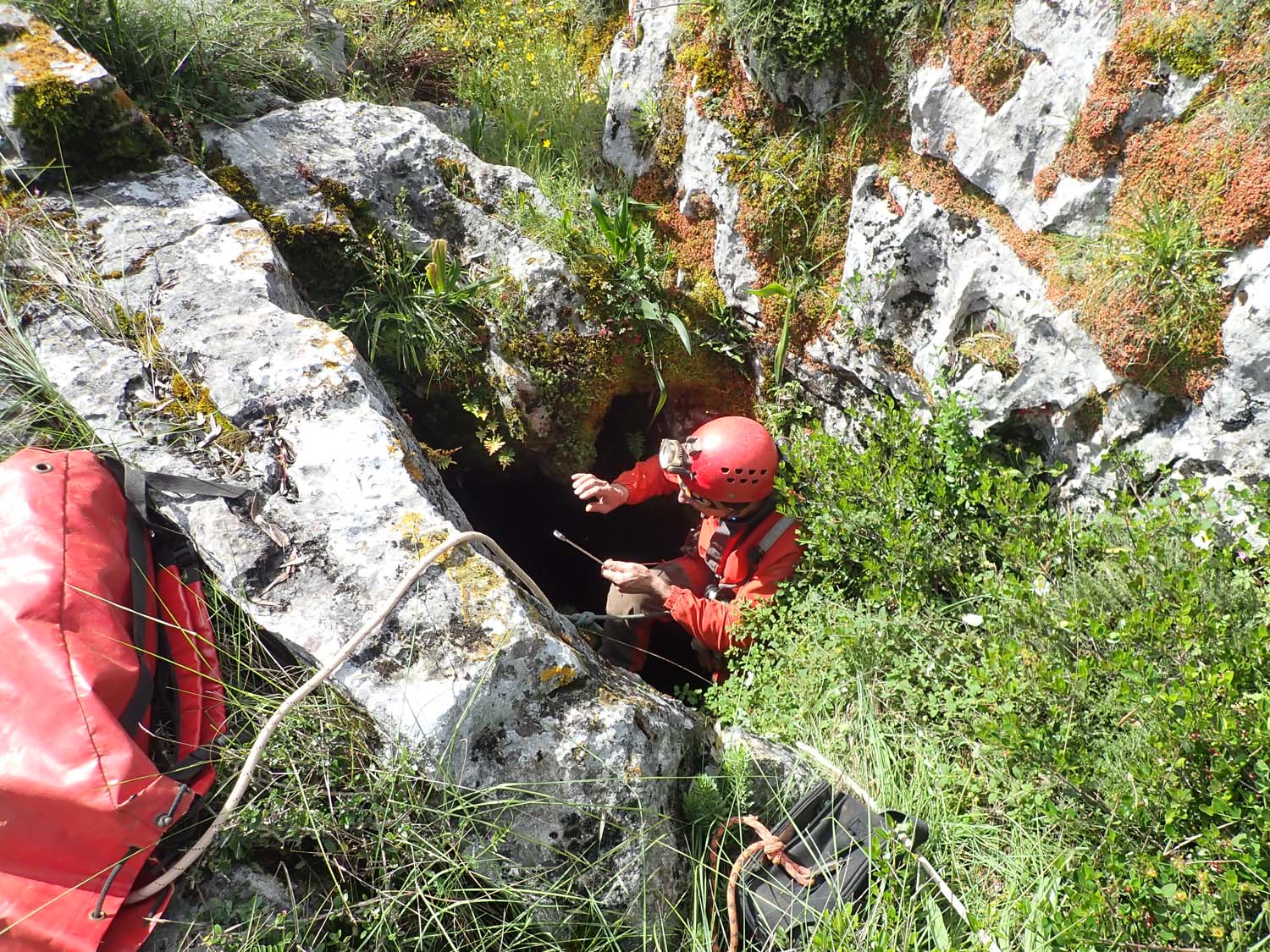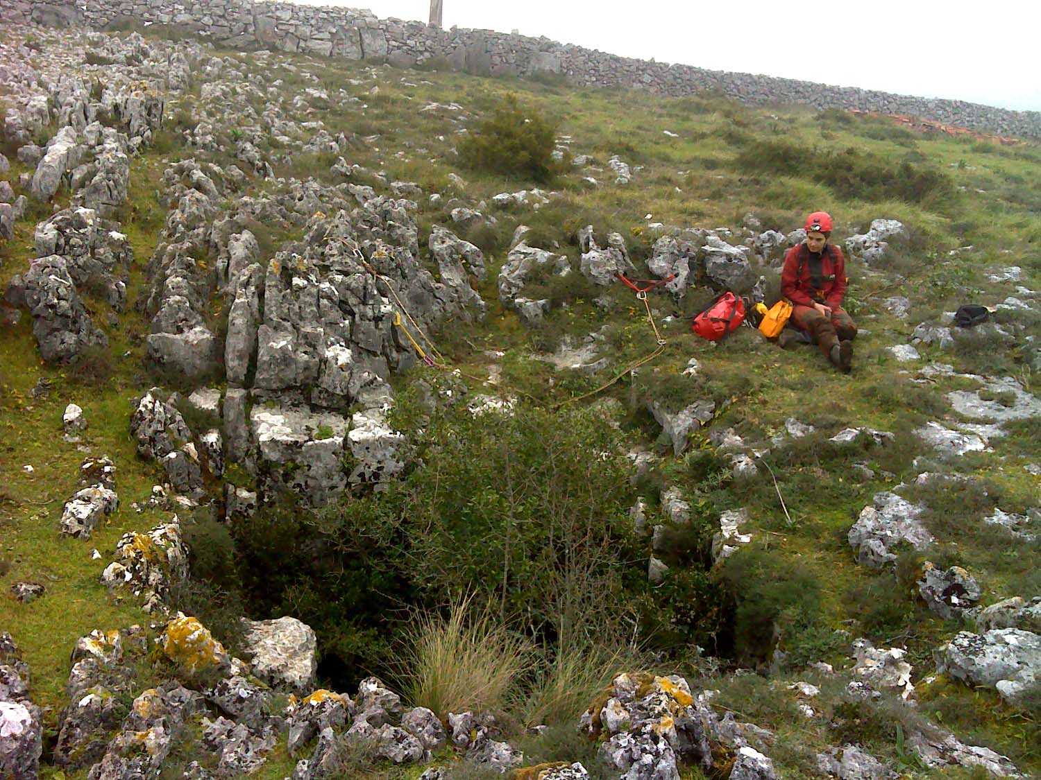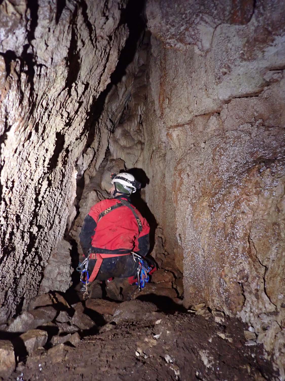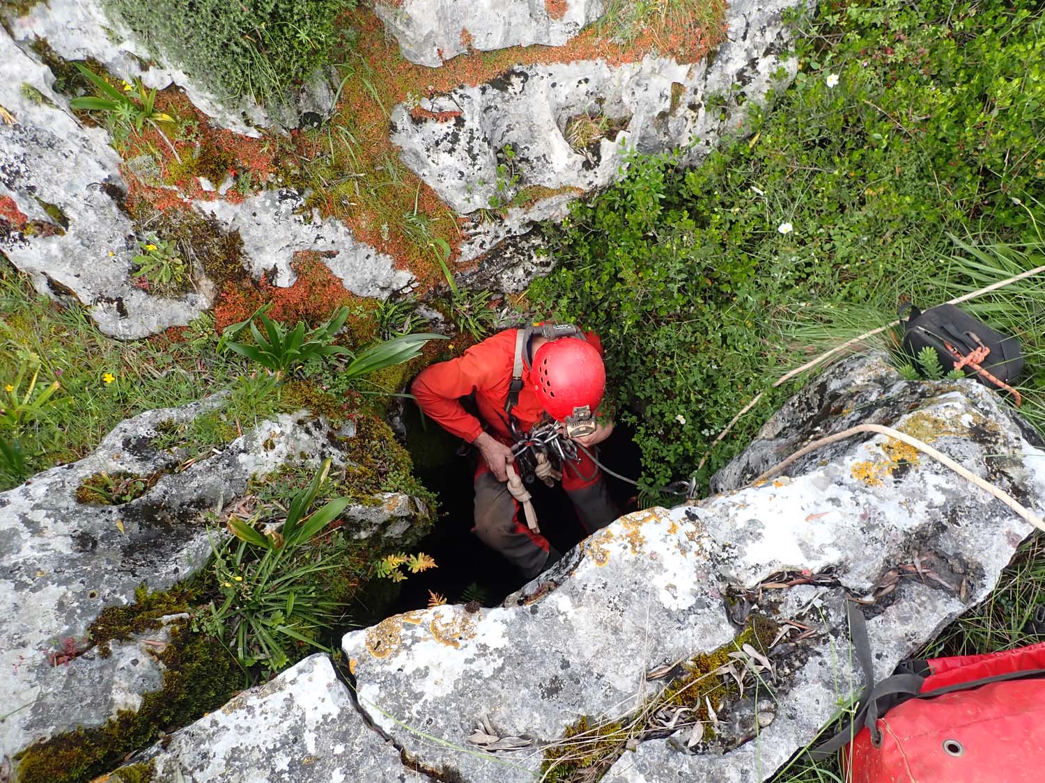 Contudo fizemos uma breve visita recentemente com o objetivo de elaborarmos uma ficha de equipagem e um pequeno levantamento fotográfico. Reparámos também que foi feito um trabalho de desobstrução que adicionou mais uns metros à topografia. Uma pequena passagem estreita, um poço com patamar e por baixo um caus de blocos que se vai descendo em destrepe, até não ser mais humanamente possível progredir.