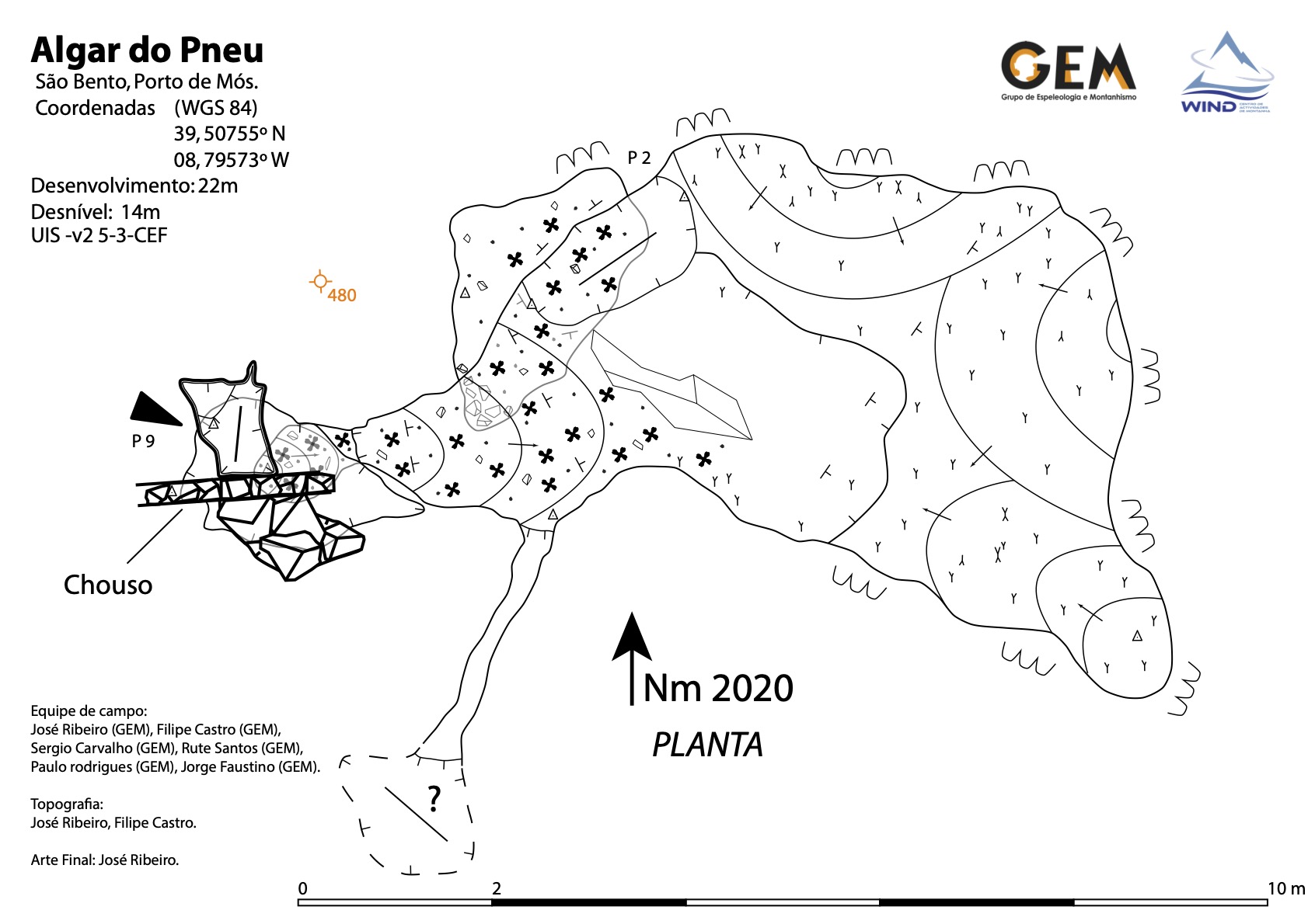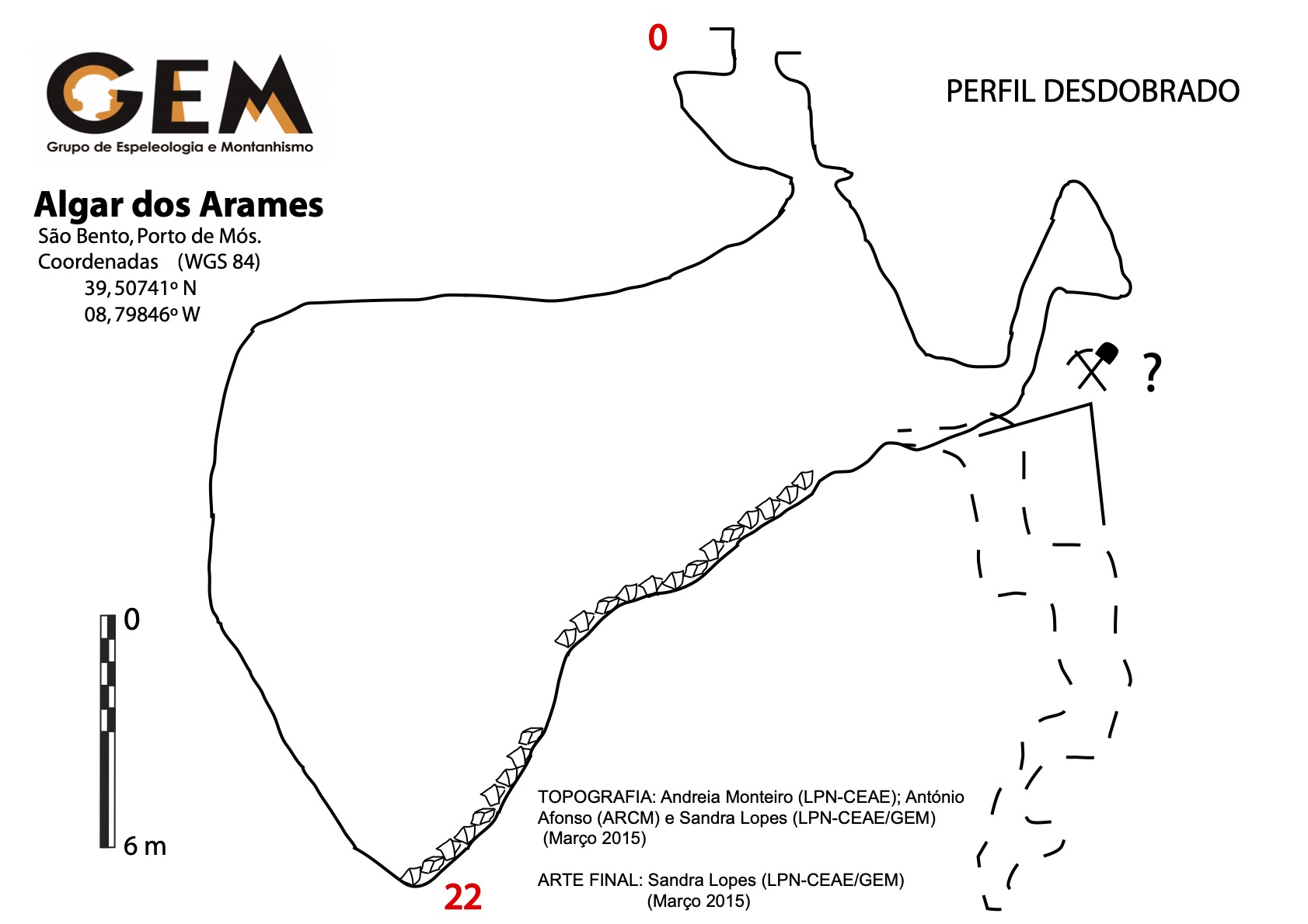 Fica registado na topografia já existente em tracejado e com respetivo símbolo de desobstrução. Desconhecemos quem por aqui andou na “labuta”…