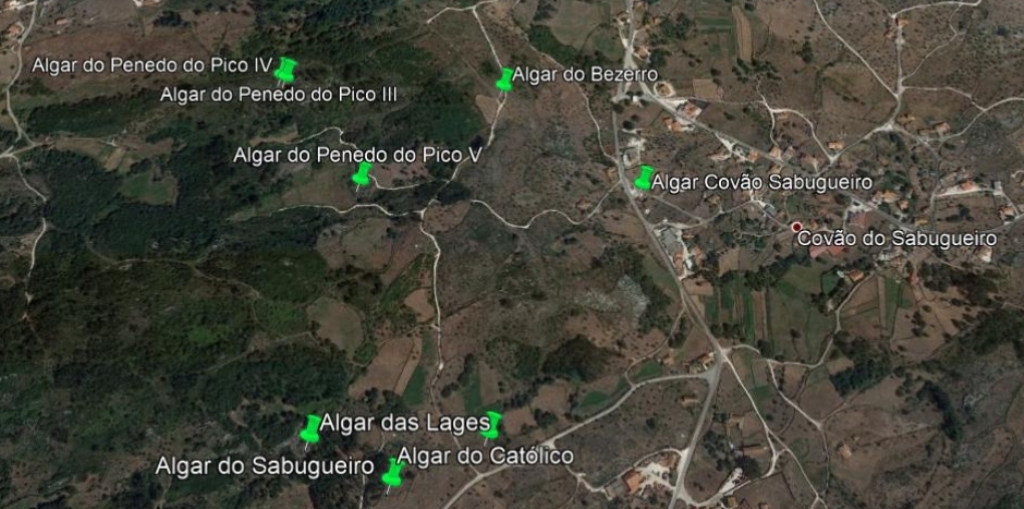Figura 1 - Localização dos algares, tendo como referencia a localidade de Covão do Sabugueiro.