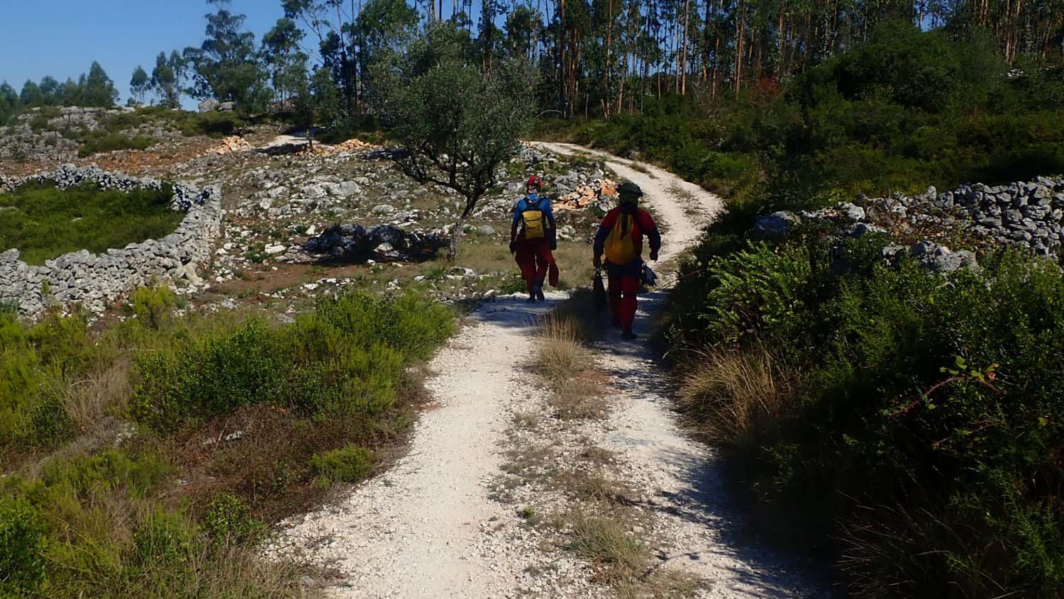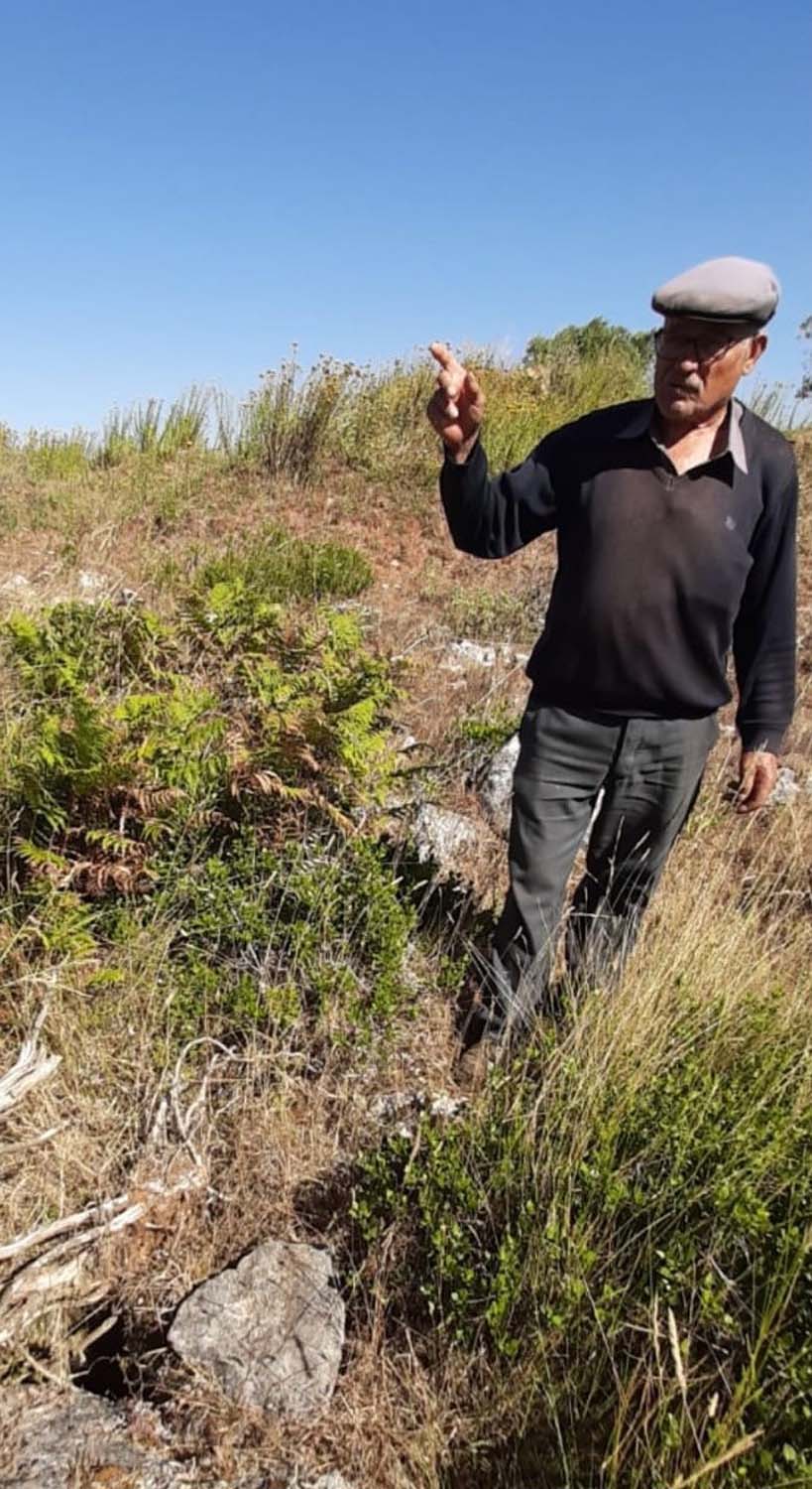 Andávamos para ali nós a “bater” terreno e nada, até que aparece um conterrâneo conhecido por ali como Mocho, mas não gosta que o tratem assim, vai se lá perceber. Bom, conversa puxa conversa e lá nos indicou que ali ao longe, a 50 metros dos eucaliptos, está lá um algar encostado à estrada… Bem, escusado será dizer que os 50 metros cresceram muito…