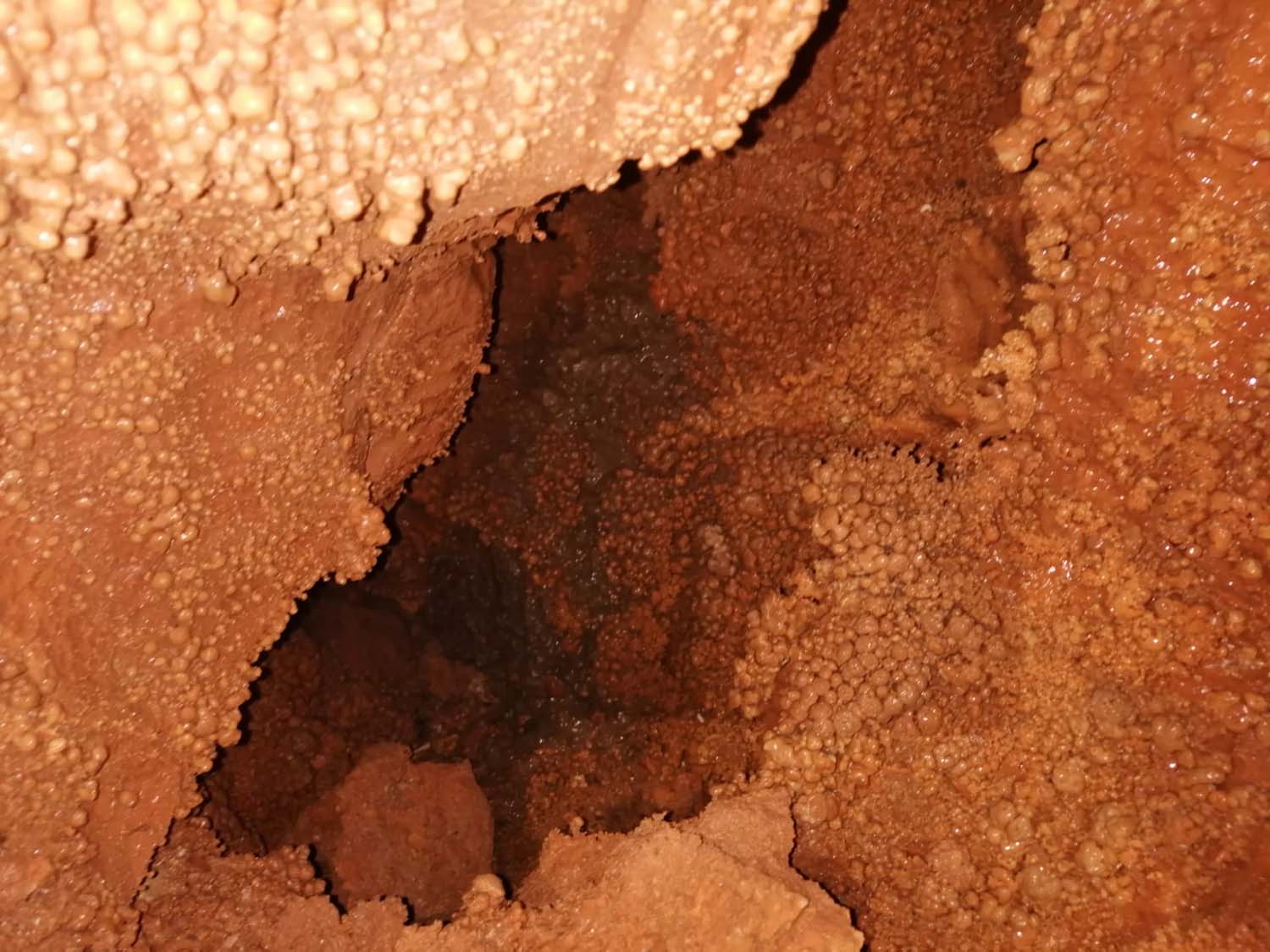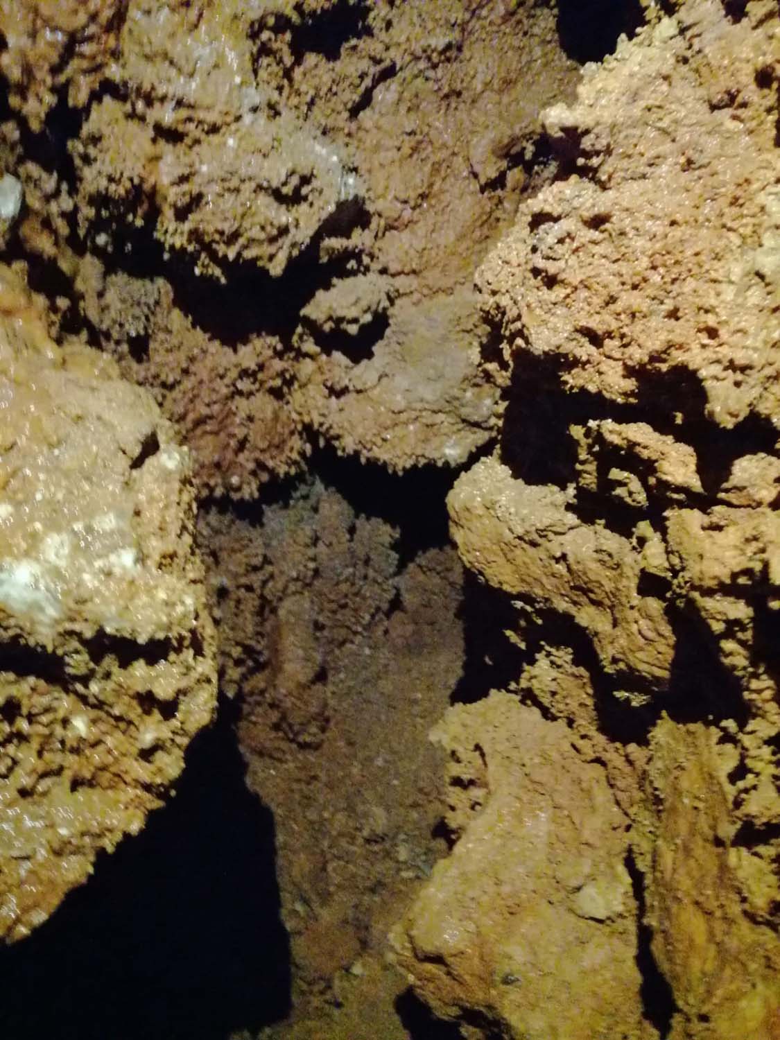 Terminaria aí para nós o algar, mas identificámos na cabeceira do poço de 4m uma pequena fenda no sentido NNE. Após desobstrução ficou com uma pequena diáclase com desenvolvimento de aproximadamente 5m rica em formas de reconstrução e onde se consegue andar bem em pé. No final outro pequeno poço completamente colmatado de argila, terminando aí o algar.